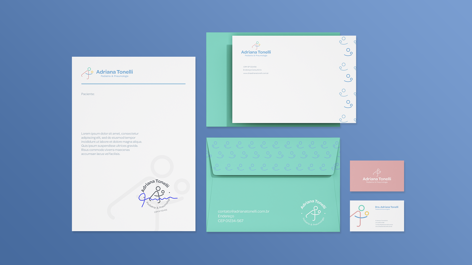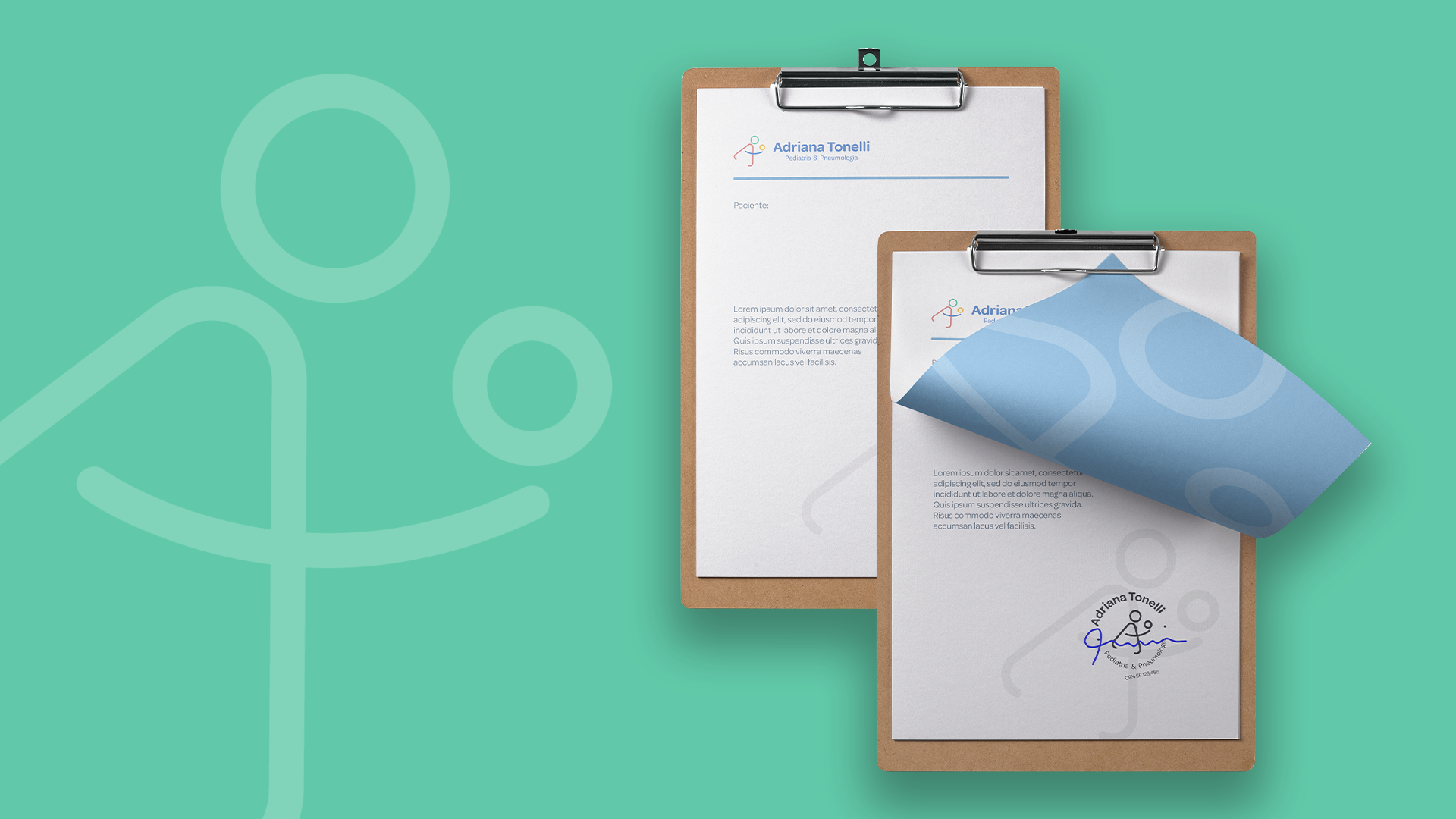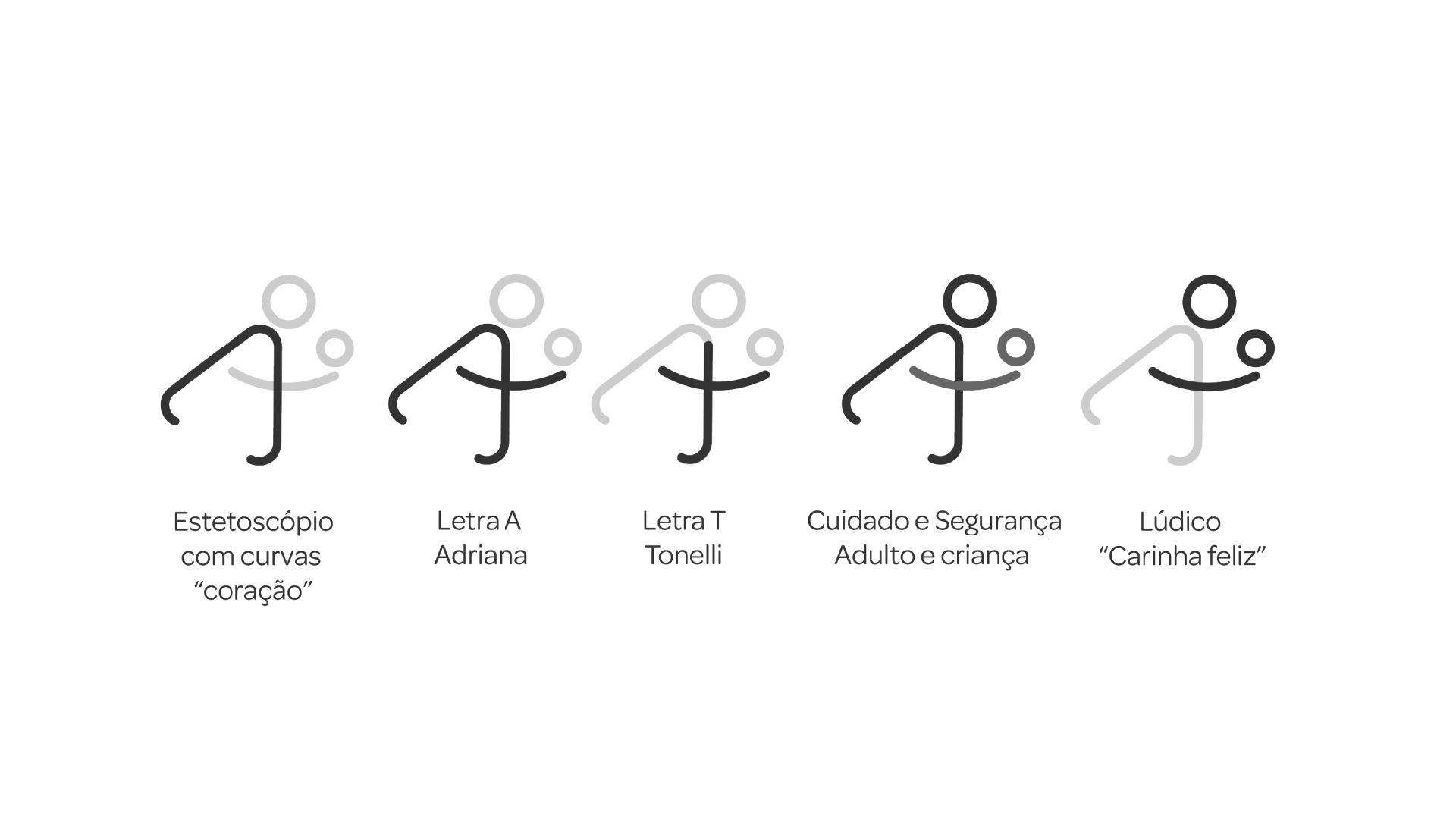 O símbolo da Dra. Adriana Tonelli é representado por um estetoscópio, um dos principais instrumentos de sua prática médica. A forma do símbolo, assemelhando-se a um coração, incorpora suas características fundamentais, enquanto as curvas se assemelham a um abraço, unindo as iniciais "A" e "T" de seu nome e sobrenome. A combinação destes elementos, juntamente com a presença lúdica de um sorriso infantil e cores que remetem à primeira infância, completa a expressão de sua dedicação para com seus pacientes.